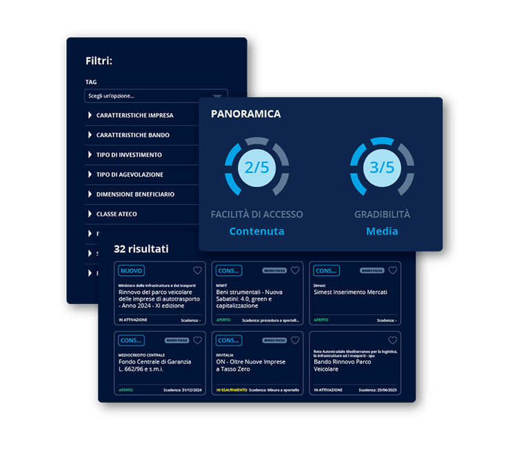 Individua rapidamente agevolazioni e bandi adatti ai tuoi progetti